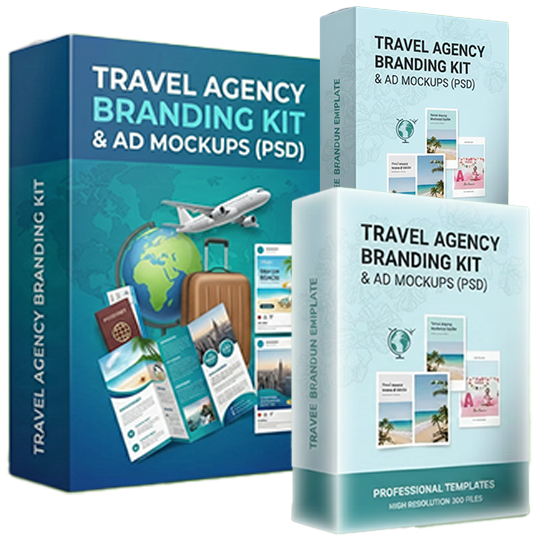 📁 Travel Agency Branding Kit & Ad Mockup PSD Files